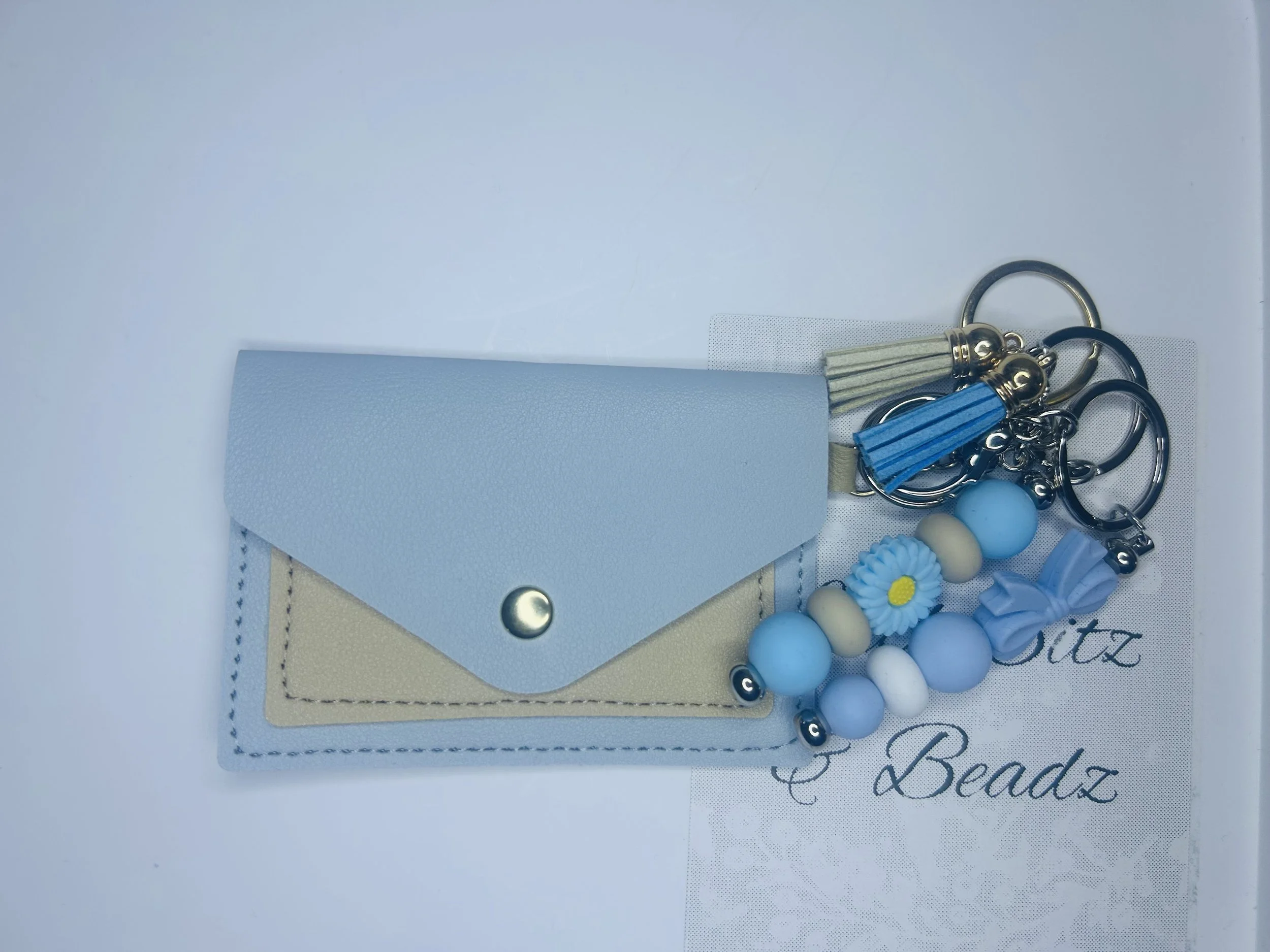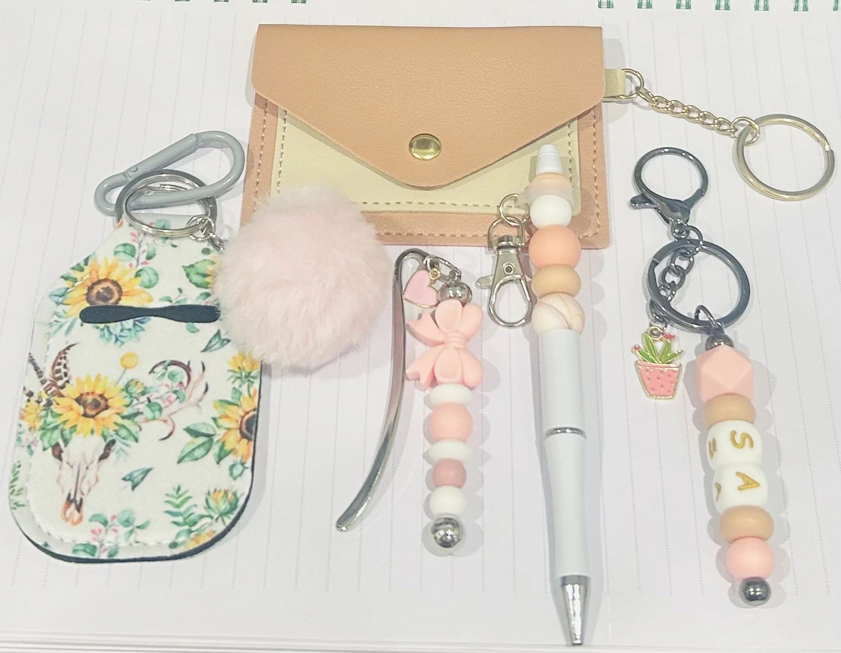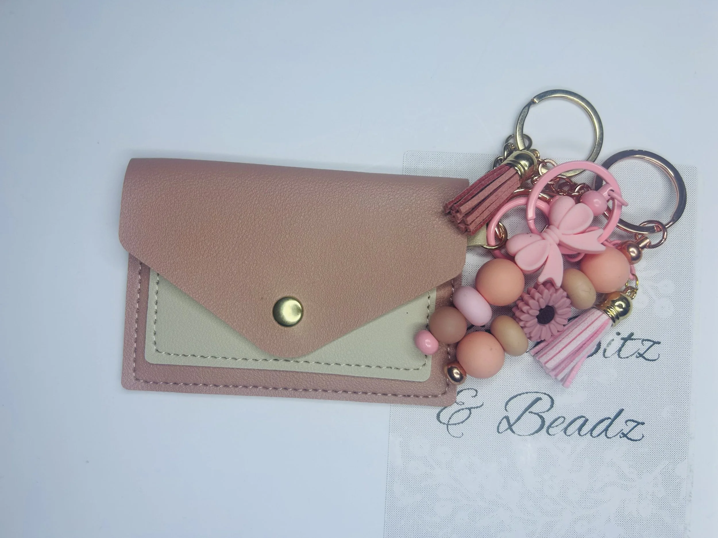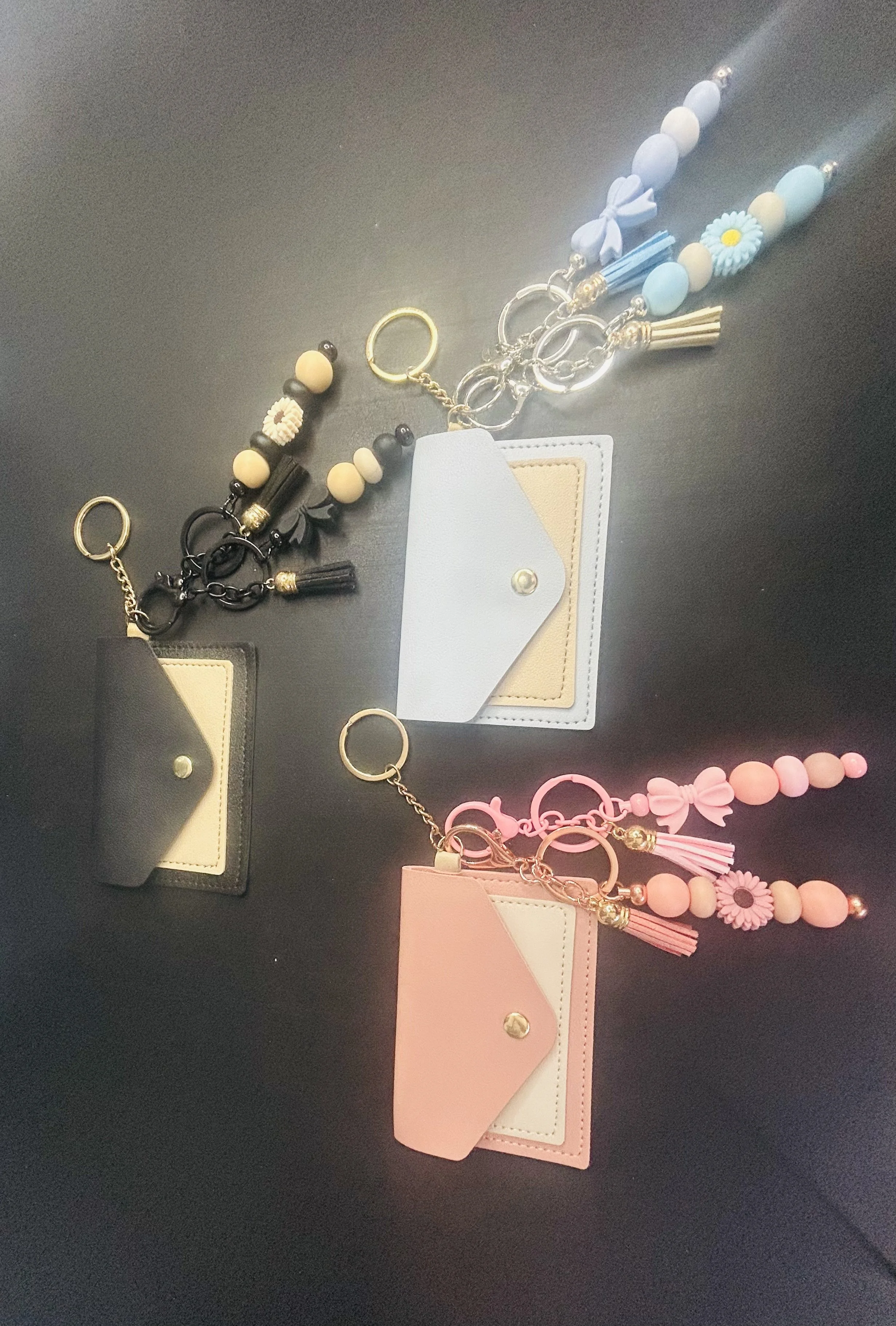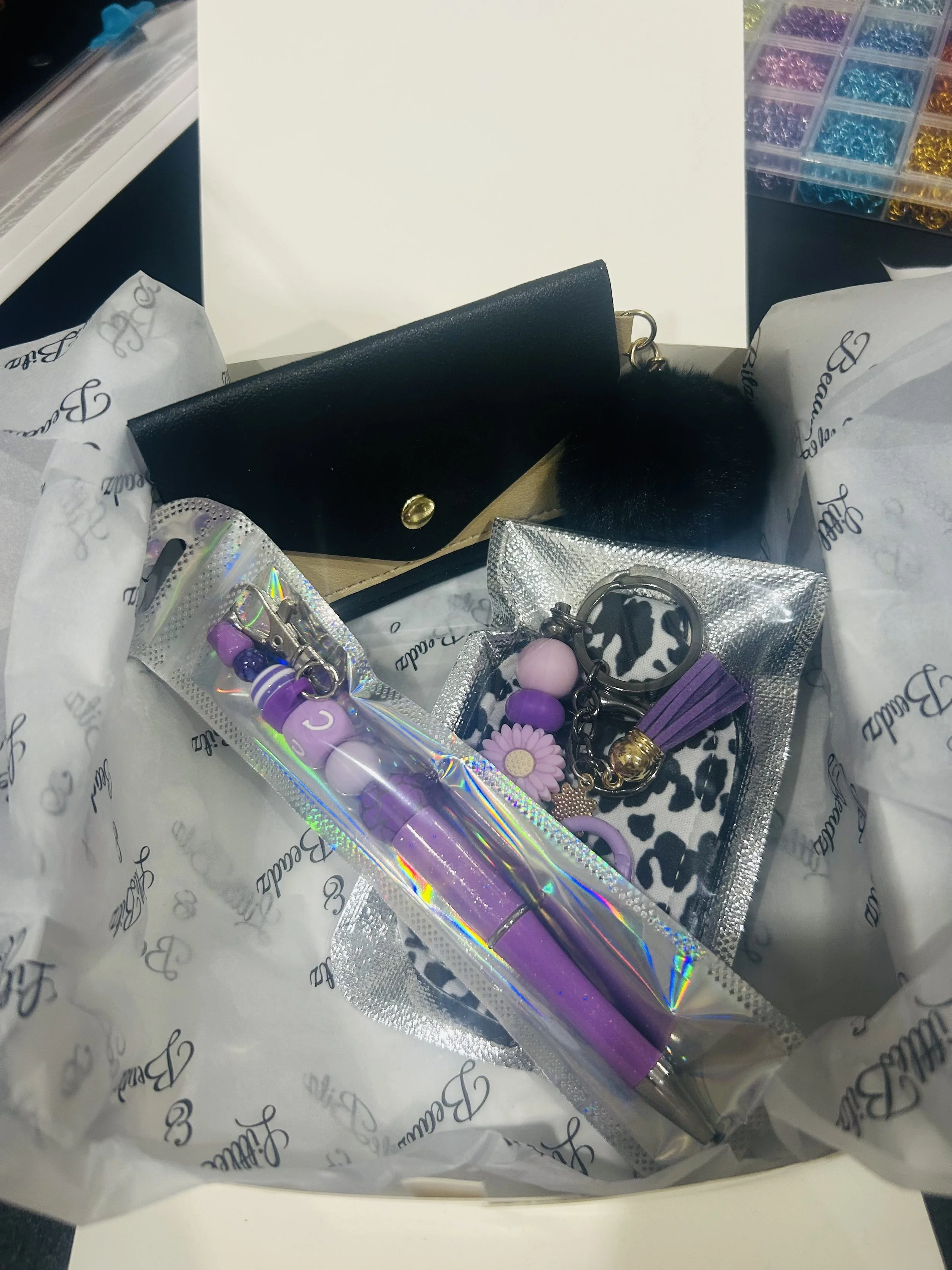 Gift pack $54.00 Card holder with keychain $38.00 Flower key chain $13.99 Bow beaded keychain $13.99 Beaded Key Chain $12.99 Beaded Book Divider $13.99 Beaded Pens $12.99
